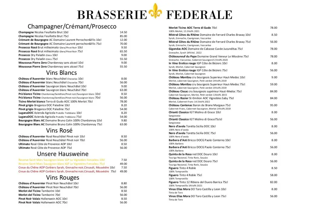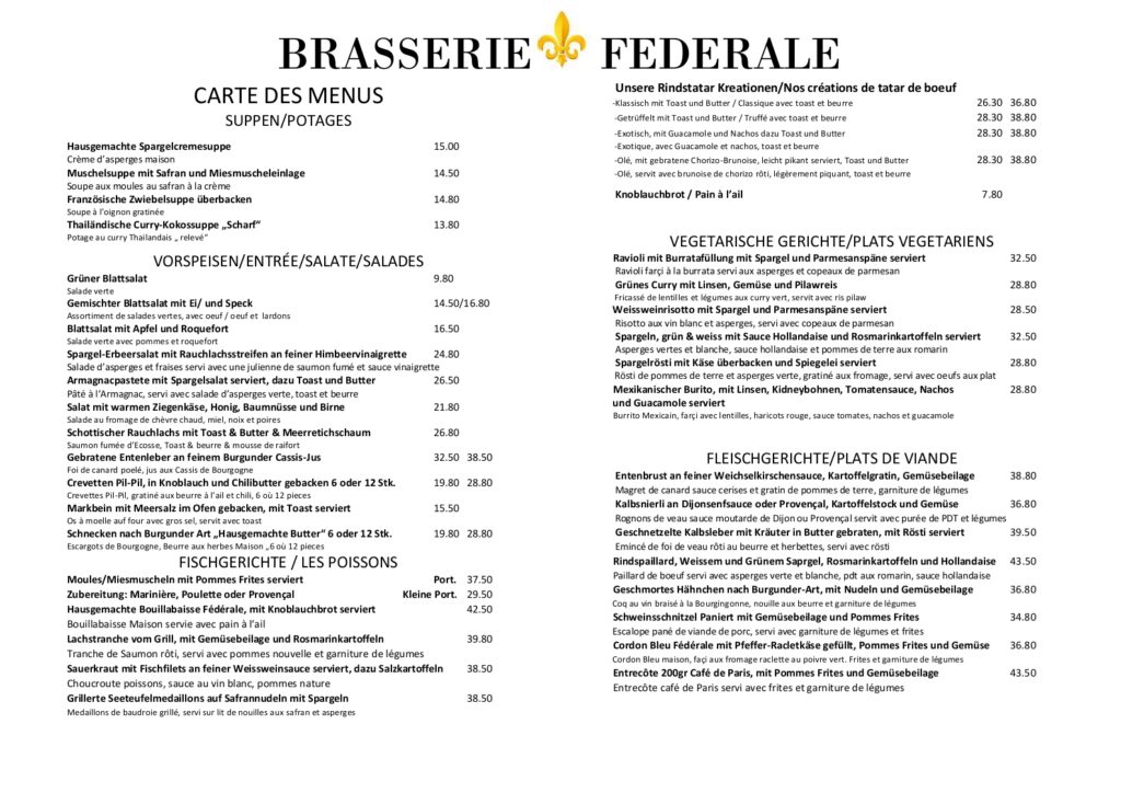 Willkommen in der Brasserie Fédérale – ein Ort, wo französische Küche auf herzliche Gastlichkeit trifft.
